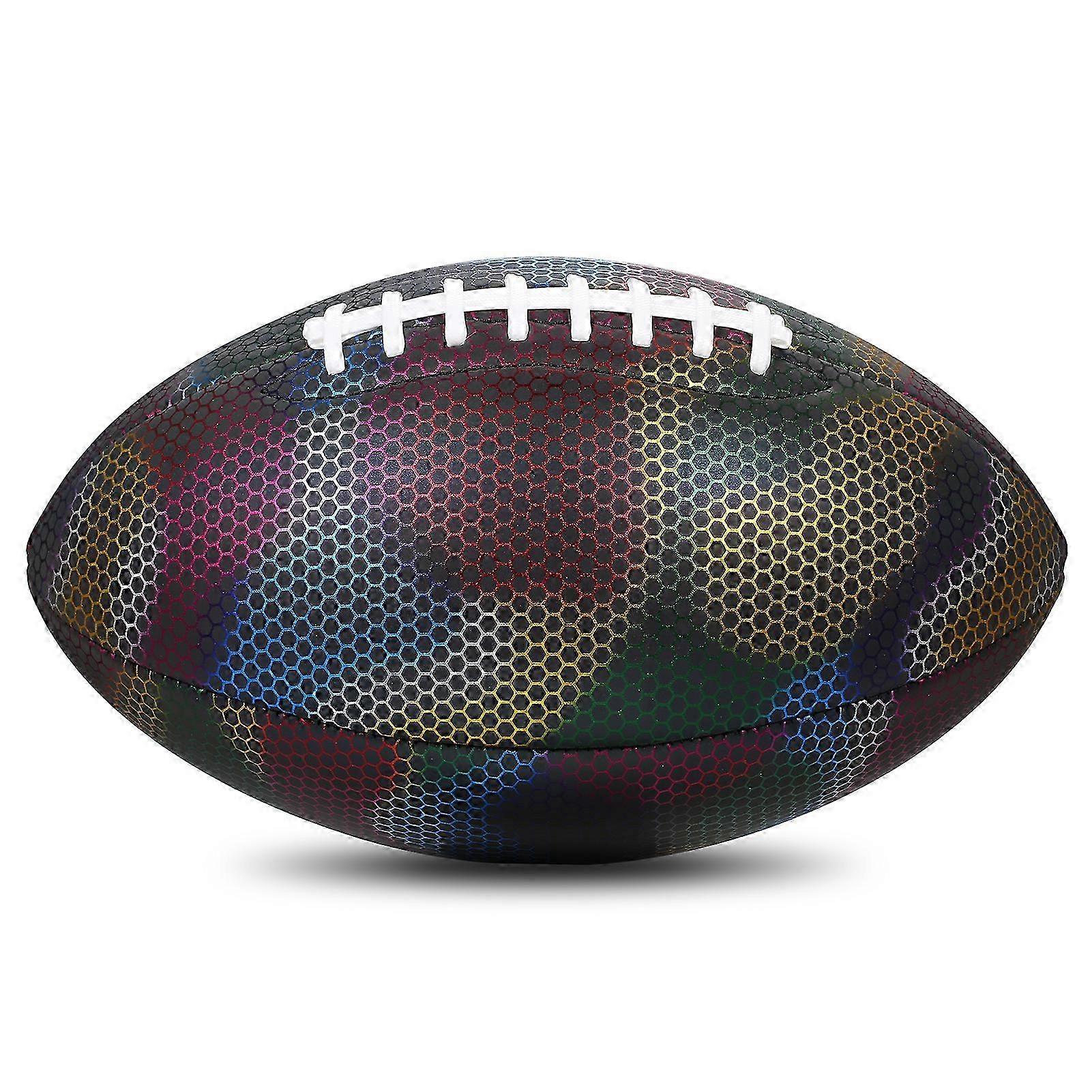 Holographic Reflective Football, Glowing Luminous Rugby Indoor Outdoor Leather Ball, Gifts for Boys Girls Men Women