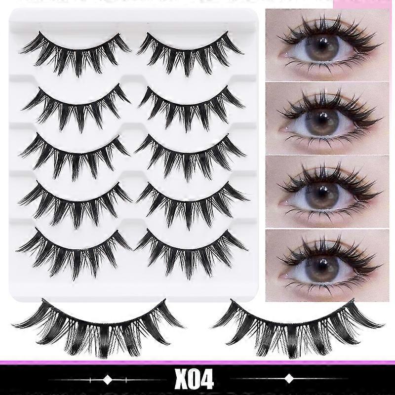 DINGSEN 5 Pairs Manga Lashes Cosplay Fake Eyelashes Strip Lash Soft Natural Look Fox Eye Korean Manhua Makeup False Eyelashes