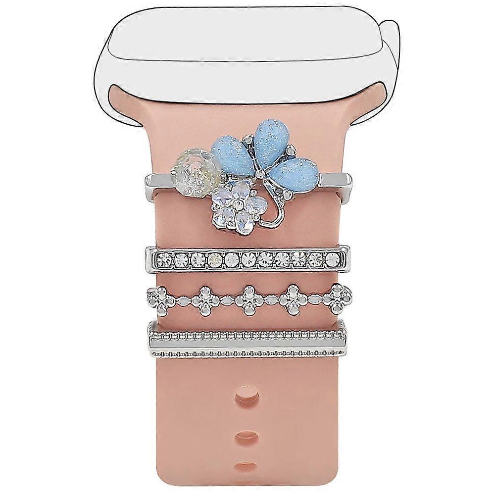 4Pcs Fashion Flower Watch Band Ornament Metal Diamond Decorative Ring Wristbelt Charms for Apple Watch Band Strap Accessories