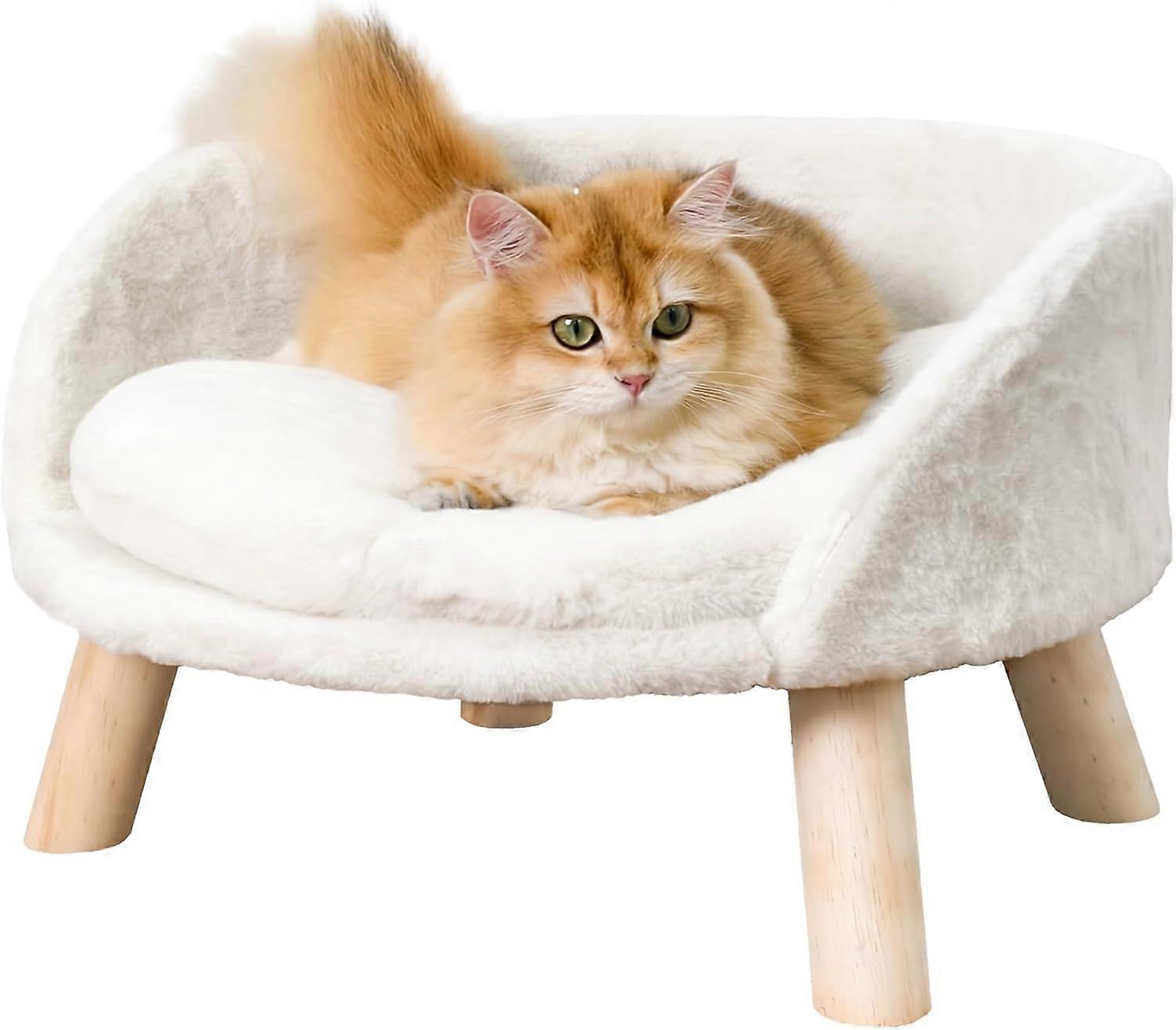 Cat Sofa Chair: Elevated Nordic Pet Stool Bed with Removable Waterproof Mat - Raised Plush Fur Dog Kitten Couch with Wooden Legs Frame (Dia 50cm)