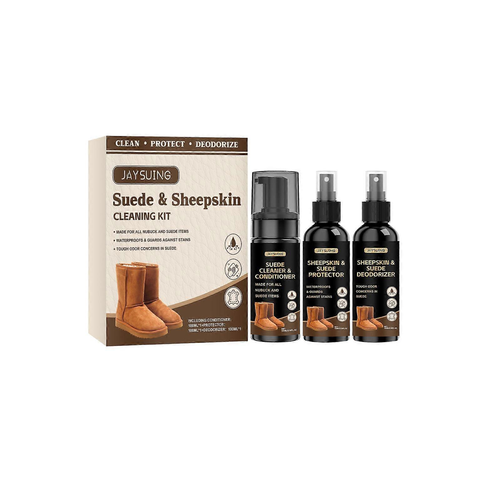 Suede & Sheepskin Cleaning Kit - Foam Cleaner & Conditioner, Water & Stain Protector, Deodorizer, Eraser, Brushes & Cloth