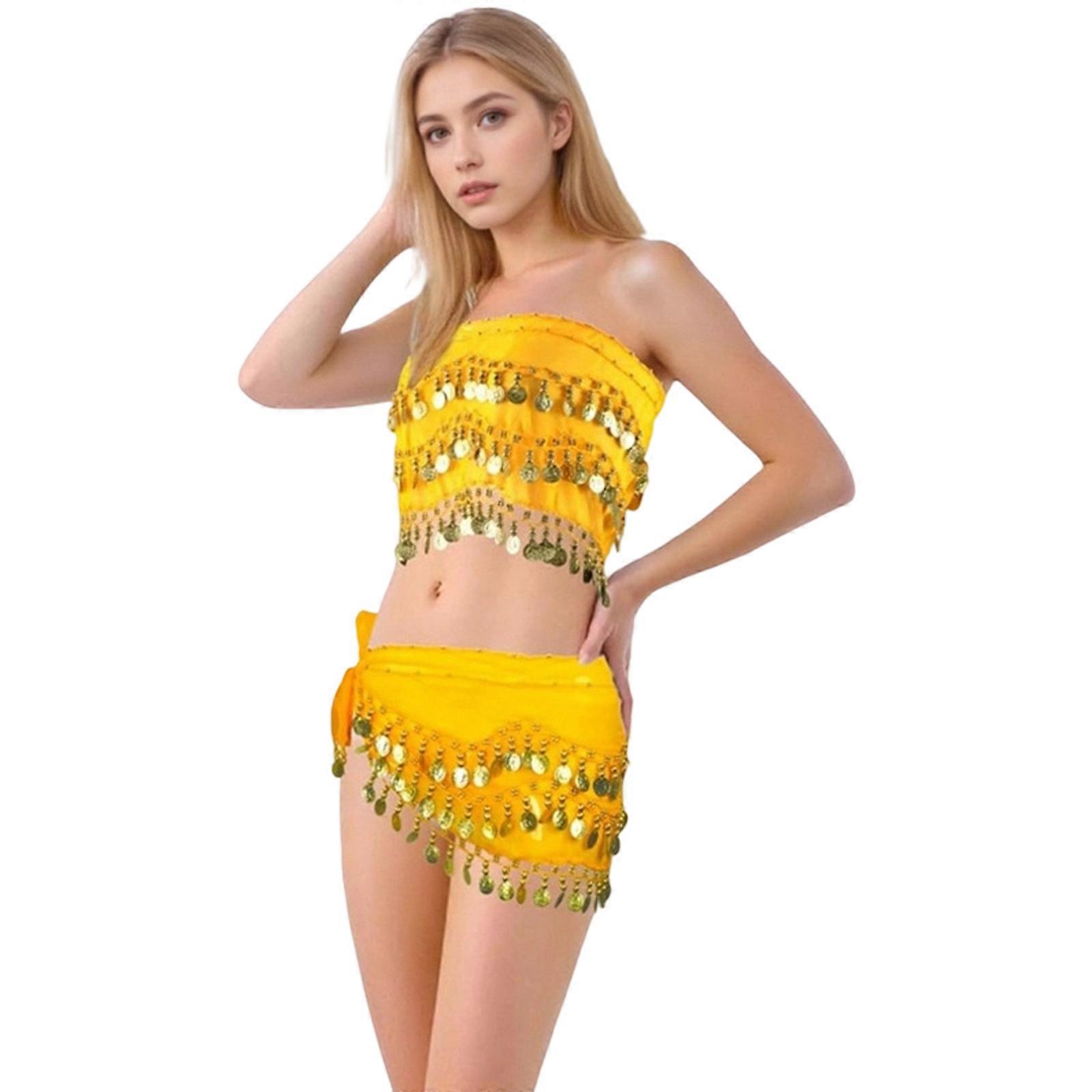 Belly Dance Costume Set Belly Dancer Outfit Set Halloween Costume Belly Dance Hip Scarf and Top Set Yellow os