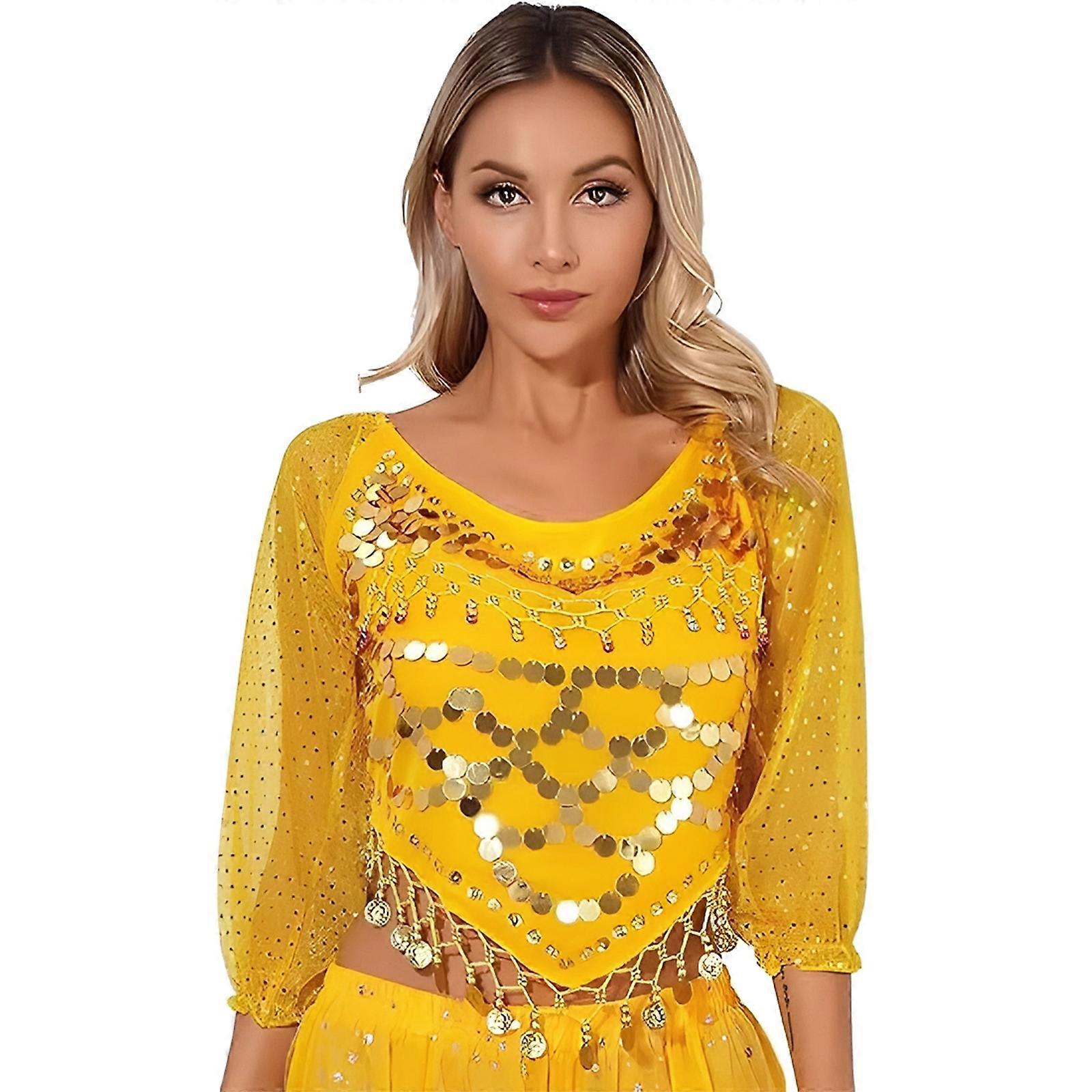 Belly Dance Costume for Women Professional Belly Dance Shirt Top Belly Dancing Coin Crop Top Carnival Dancer Outfits Yellow os