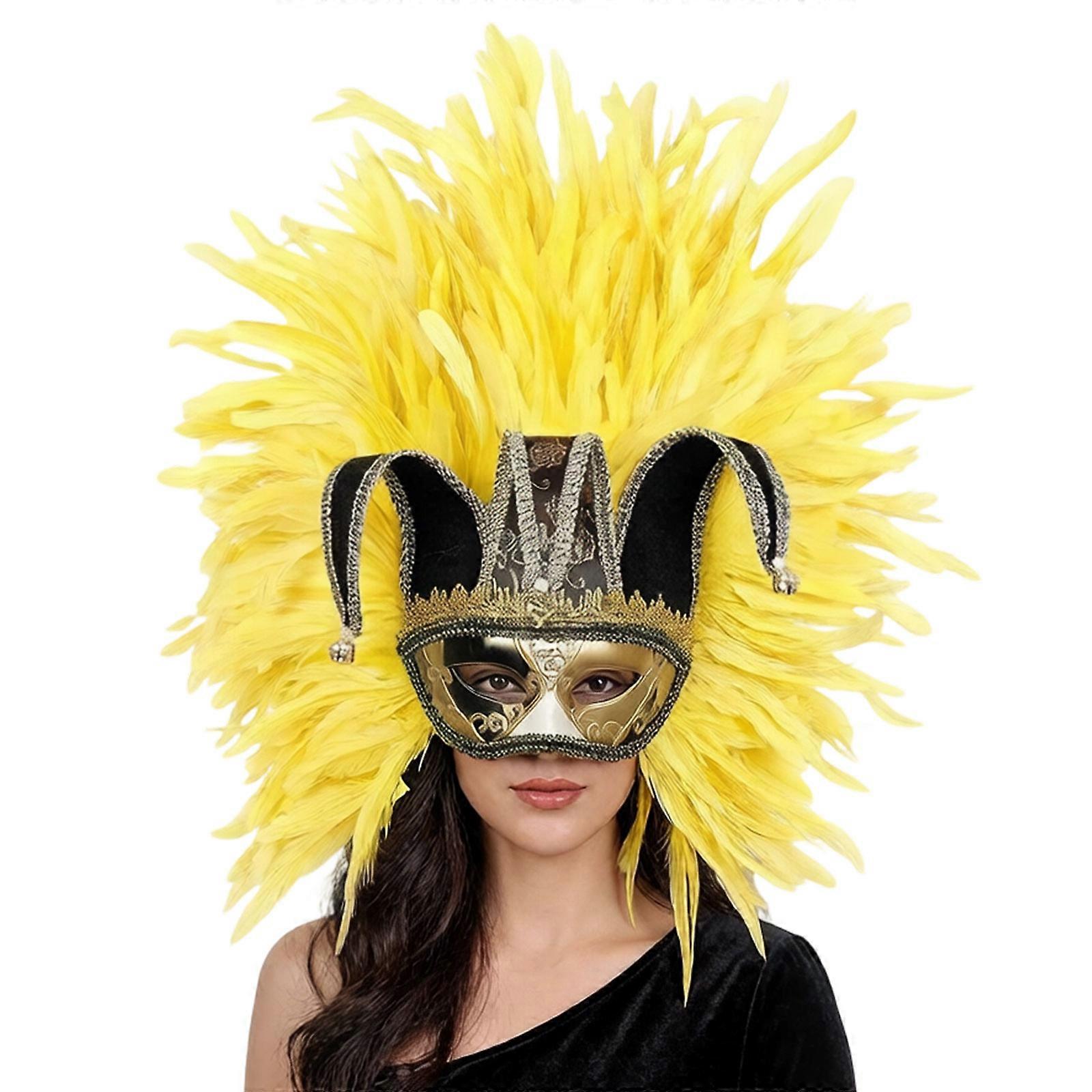 Artistic Half Face Feather Mask Fashion Cosplay Decoration For Elegant Costume Accessories And Character Role Play Yellow