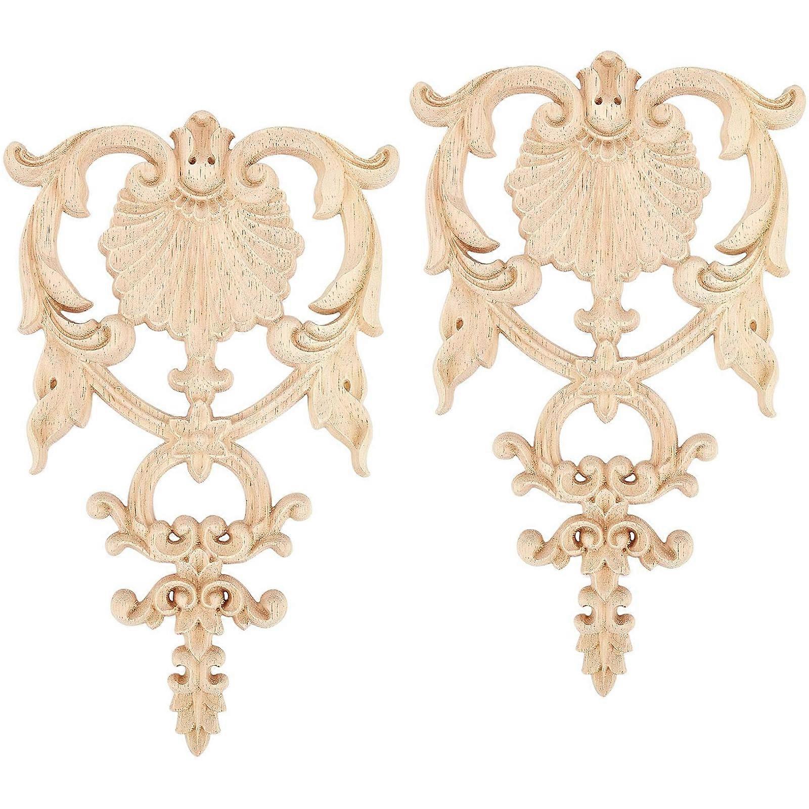 2pcs Decorative Corner Onlays Wardrobe Furniture Appliques Unpainted Wooden Carving Decals Universal Wood Appliques Multicolor