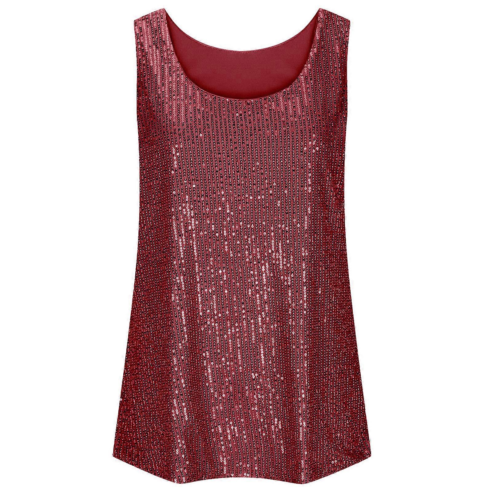 Women's Sleeveless Glitter Sequins Tank Tops Sparkles Shimmer Vest Tops Camisole Claret XL