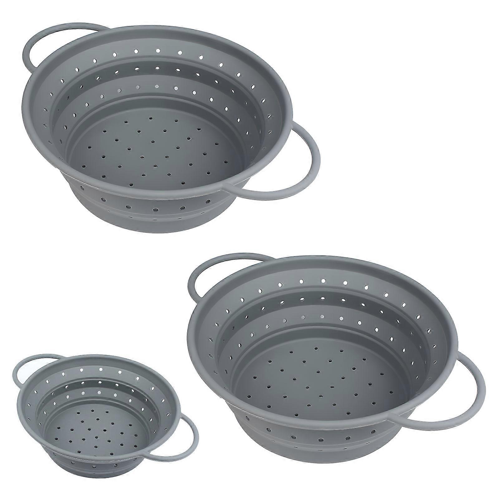 Pack Of 3 Foldable Kitchen Colanders Size Set For Draining Vegetables And Fruits Silicones Materials Durable White