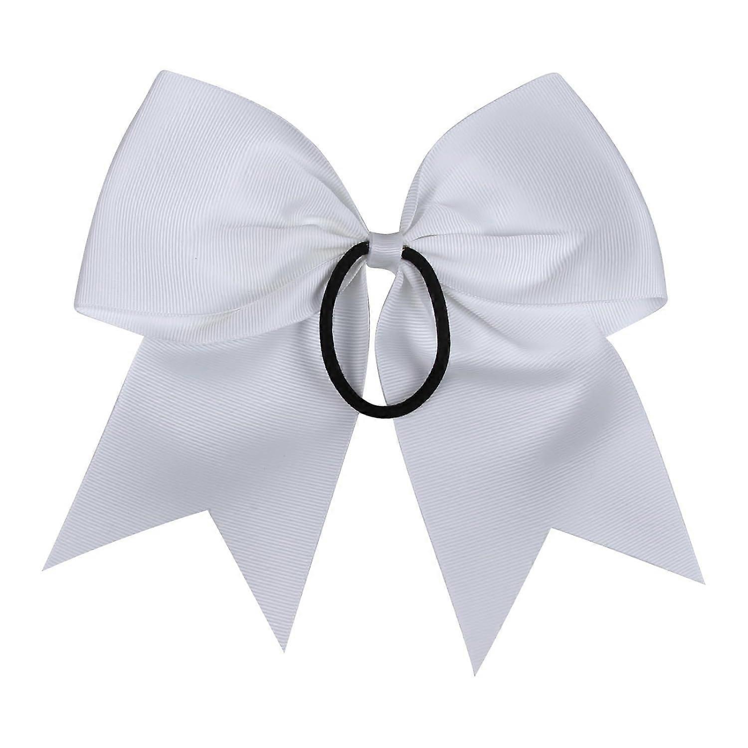Cheerleader Bows 8 Inch 20 pcs Ponytail Holder Cheerleading Bows Hair Tie (White)