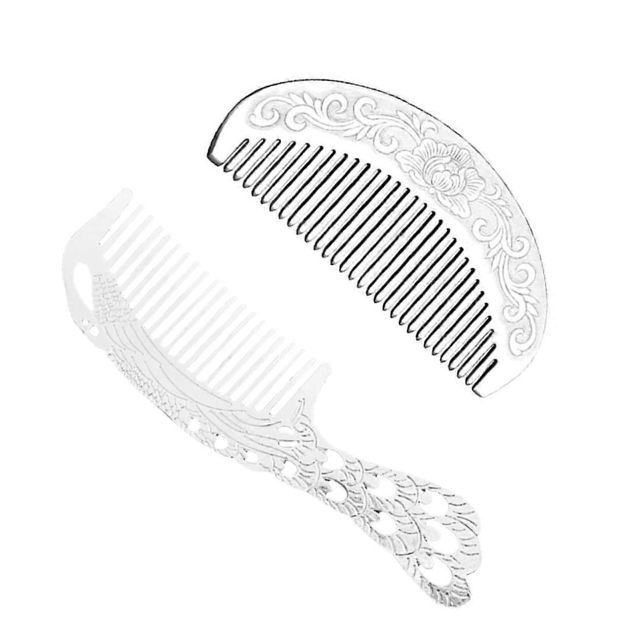 Wide Tooth Hair Comb Set with Smooth Detangling Action for Fine Hair Styling, Silver 2pcs