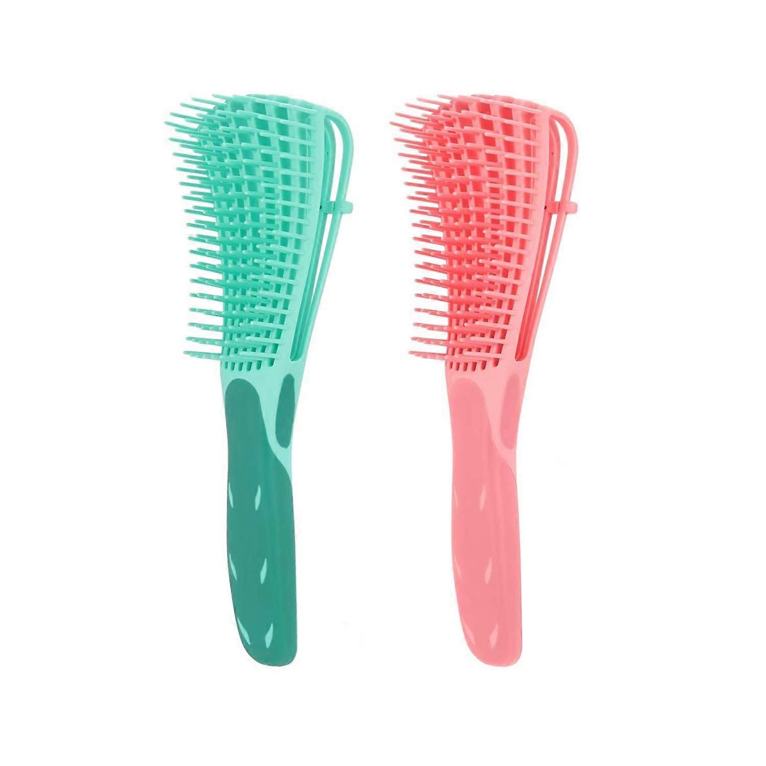 Detangling Brush Set for Natural Textures 2 Pack (Green and Pink) A practical detangling brush set designed for natural, textured hair. These brushes work on wet or dry hair to ease tangles and help keep hair manageable during styling and washing. Ideal for hair types from 3a to 4c including kinky, wavy, curly, and long hair. Key benefits Gentle detangling: Flexible teeth help separate knots without excessive pulling, making detangling calmer and quicker. Wet and dry use: Safe for use on damp hair during conditioning or on dry hair for daily touch ups. Dual purpose: Helps detangle hair and assist in removing loose buildup from the scalp while brushing. Ready to share or store: Two brushes in different colors allow one for home and one for travel, or one for different styling routines. What makes it stand out Compatibility: Specifically suitable for a wide range of natural textures from 3a to 4c and for long hair. Practical pack: Two brushes included, green and pink, so you get an extra tool for convenience. User friendly: Designed for comfortable handling and repeated use during routine hair care. How to use Apply a leavein conditioner or detangler if preferred, then gently work the brush through sections from ends toward roots. Use in the shower to help distribute conditioner and loosen tangles while hair is wet. Use on dry hair to smooth and manage tangles before styling or protective styling. Use scenarios Prewash routine: Loosen knots and distribute conditioner while in the shower to make detangling easier and more efficient. Daily styling: Smooth and separate curls or waves on dry hair when preparing a simple style or refreshing secondday hair. On the go: Keep the second brush in a bag for quick touch ups after workouts or commutes. Product details Pack contents: 2 brushes, one green and one pink. Function: Detangling and cleaning assistance for natural hair textures. Compatibility: Recommended for hair types 3a through 4c, including kinky, wavy, curly, and long hair. A straightforward detangling solution for maintaining natural hair textures during washing, styling, and everyday care.