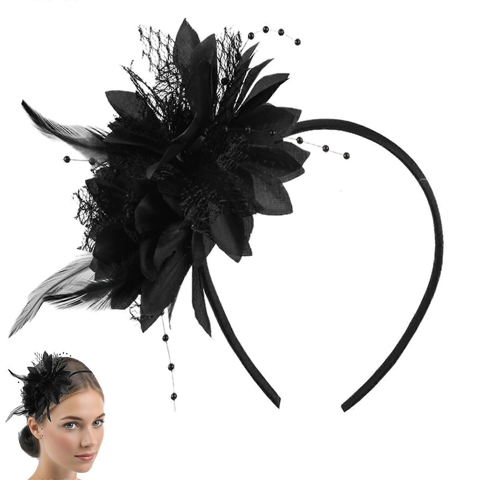 Vintage Feather Fascinator Hat with Pearl Veil Women's Headband for Wedding and Cocktail Party