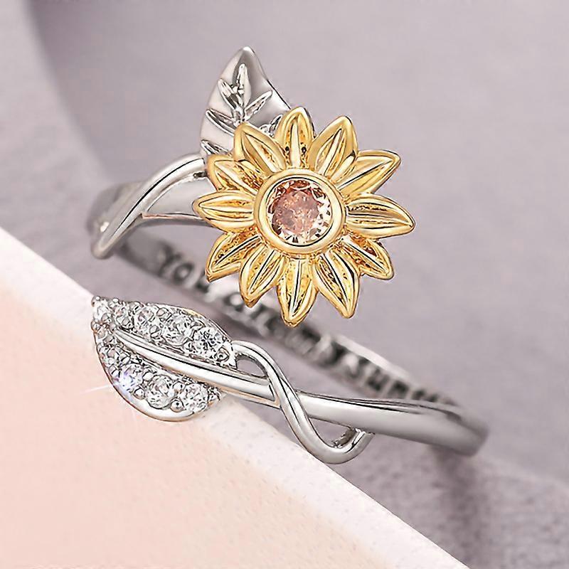Flower Cubic Zirconia Size Adjustable Rings For Women Gold Copper Metal Ring Party Jewelry