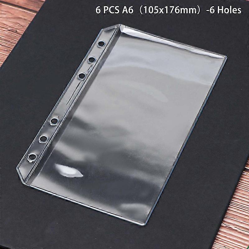 New 6PCS A5/A6/A7 6 Holes 3-layer Double-sided Binder Pockets, Waterproof PVC Transparent Zipper Folders And Side Open Folders