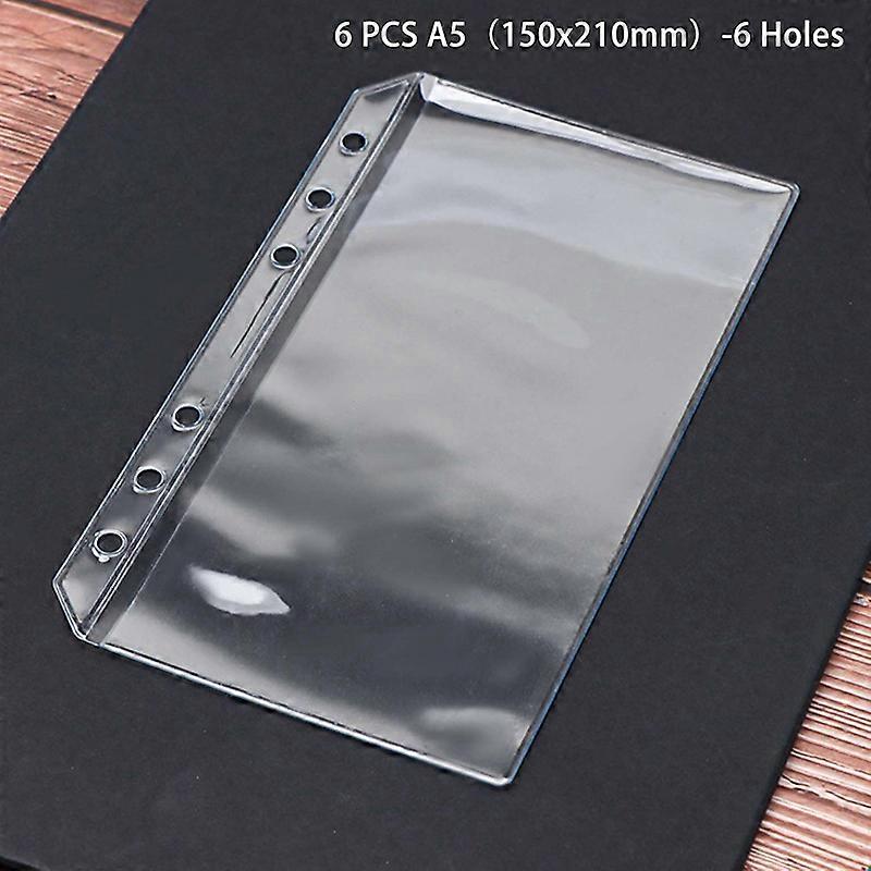 6PCS A5/A6/A7 6 Holes 3-layer Double-sided Binder Pockets Transparent Zipper Folders And Side Open Folders Waterproof PVC