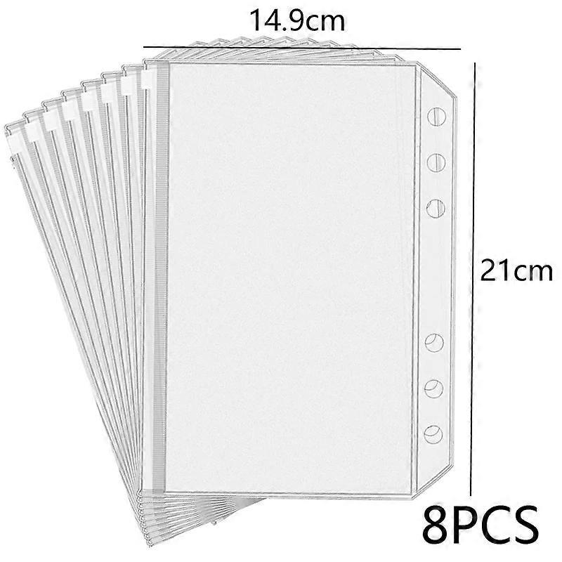 PVC Binder Pocket Cash Envelopes, Money Organizer Document Filing, Loose Leaf Inserts, Zipper Folders, Pouches, A5, A6, A7, 8Pcs