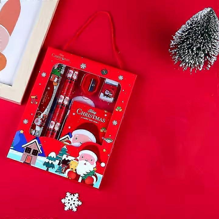 Christmas Stationery Set 6 Piece Red with Pencil Sharpener and Ruler Gift for Kids