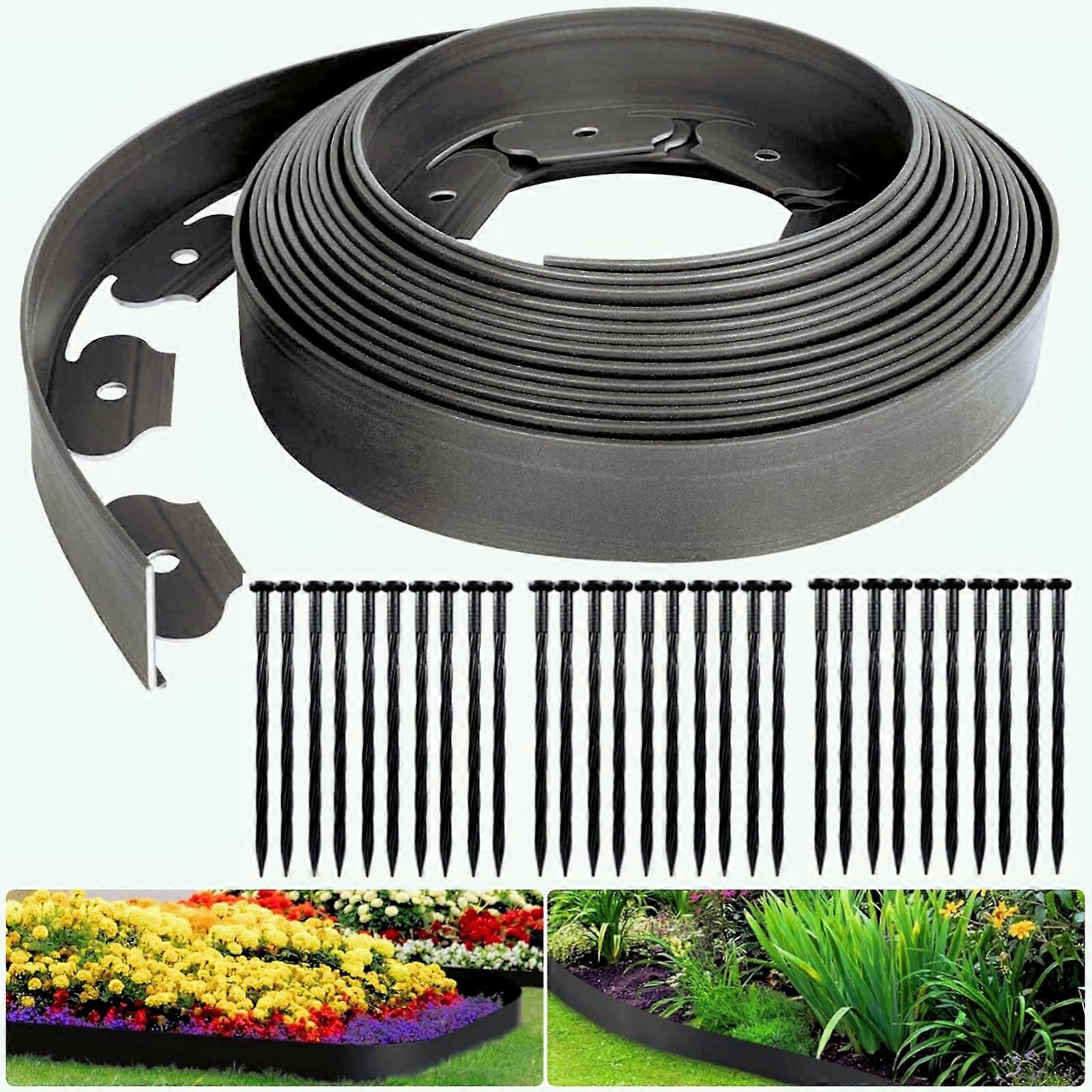 Landscape Edging No Dig Kit, 33 Ft Durable Flexible Garden Edging with 30 Spikes for Lawn Borders