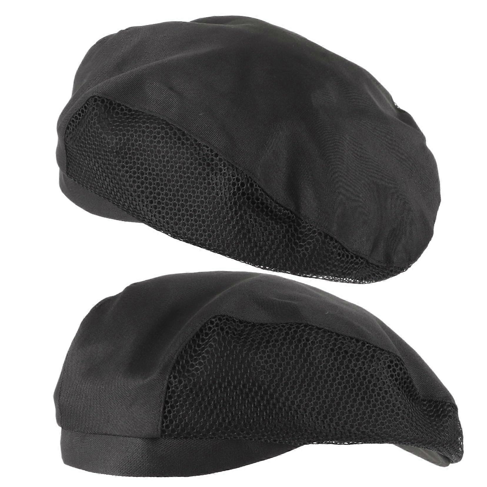 2pcs Black Chef Hats for Men and Women Breathable Cooking Caps with Hair Net for Kitchen and Food Service