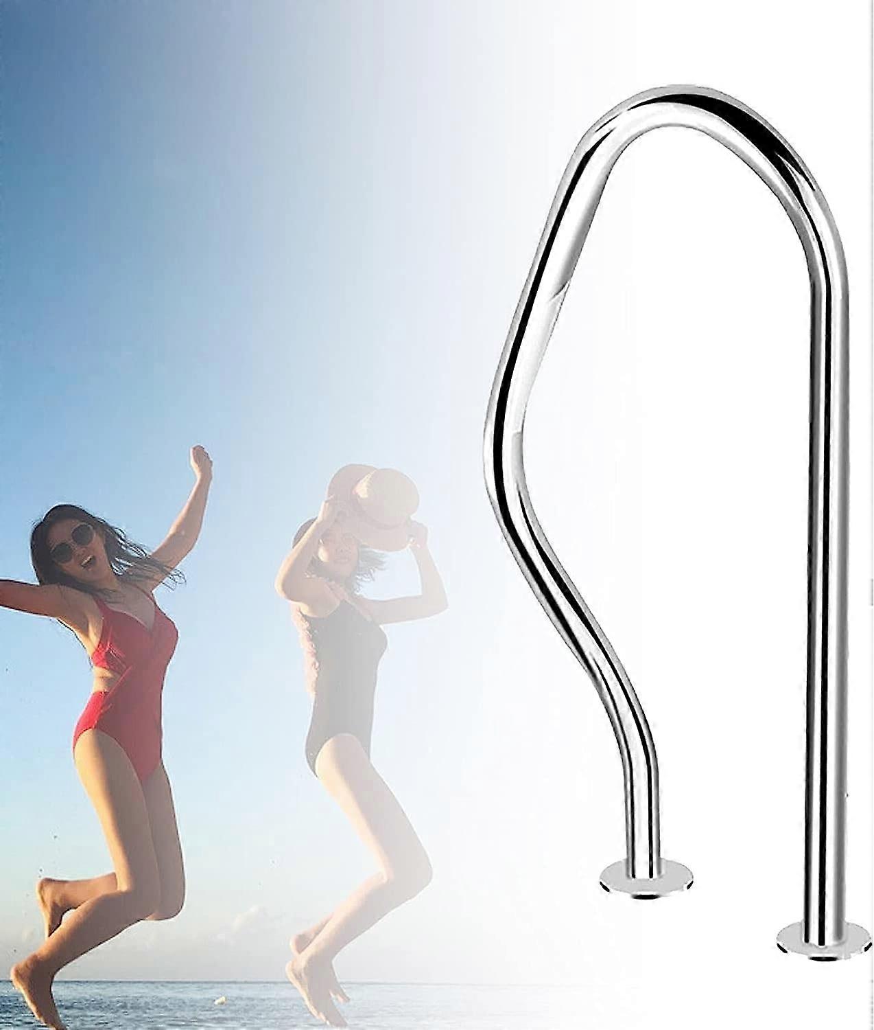 304 Stainless Steel Pool Handrail with AntiSlip Grip, Easy Install Curved Safety Rail for Inground Pools