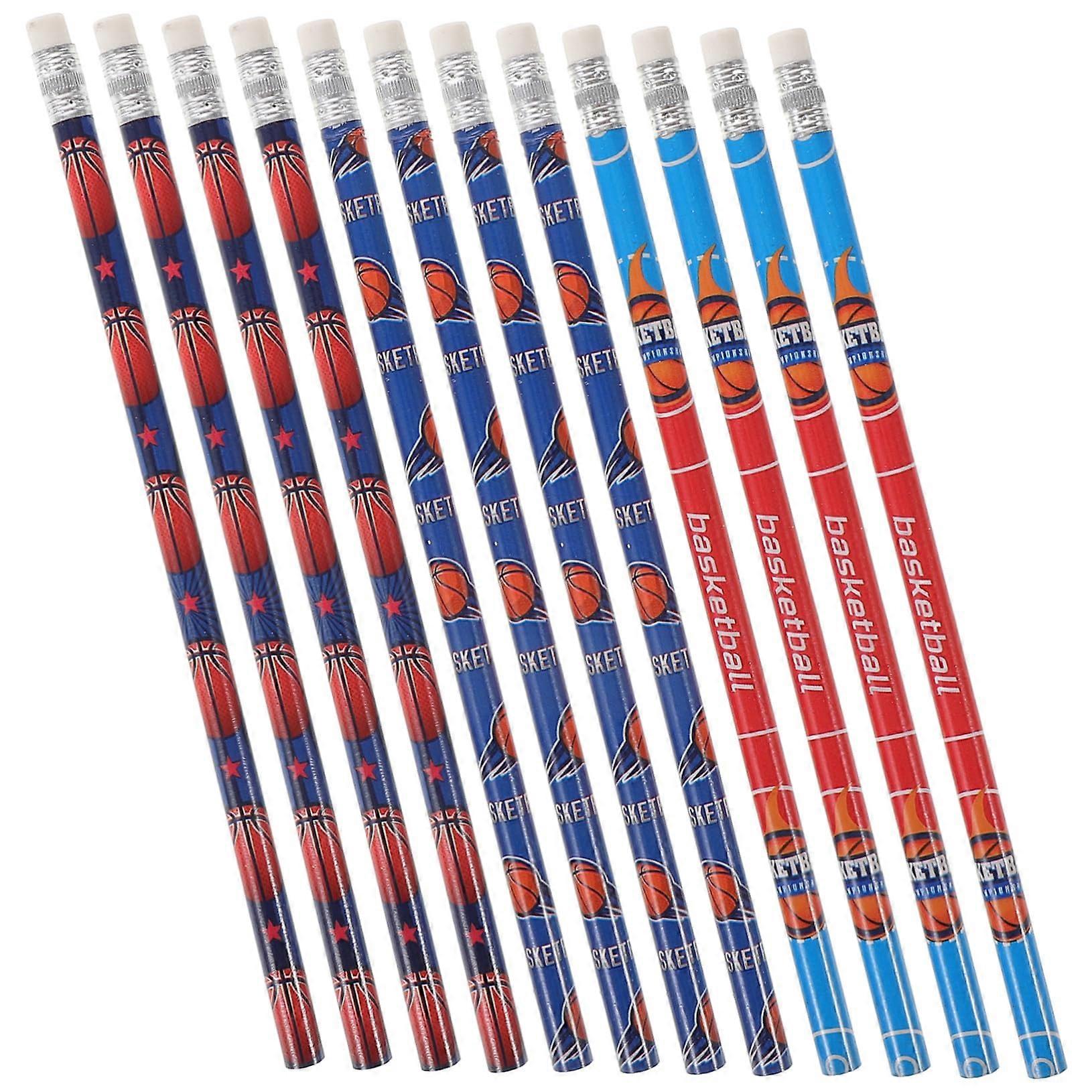 12pcs Basketball Theme Wooden Drawing Pencils with Erasers for Students and Teens
