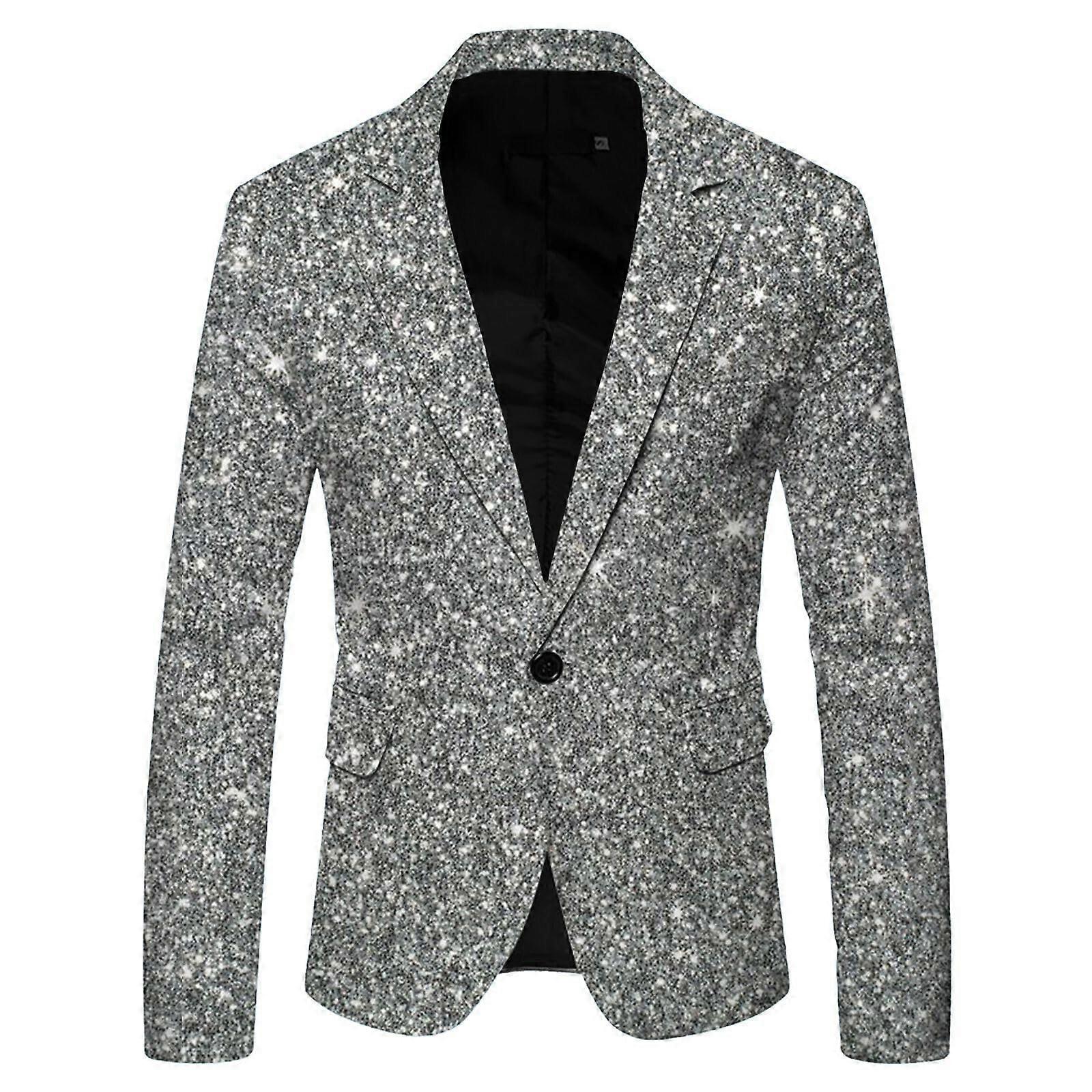 Men's Silver Sequin Blazer Slim Fit Shiny Party Tuxedo Jacket for Nightclub Wedding Prom XXL