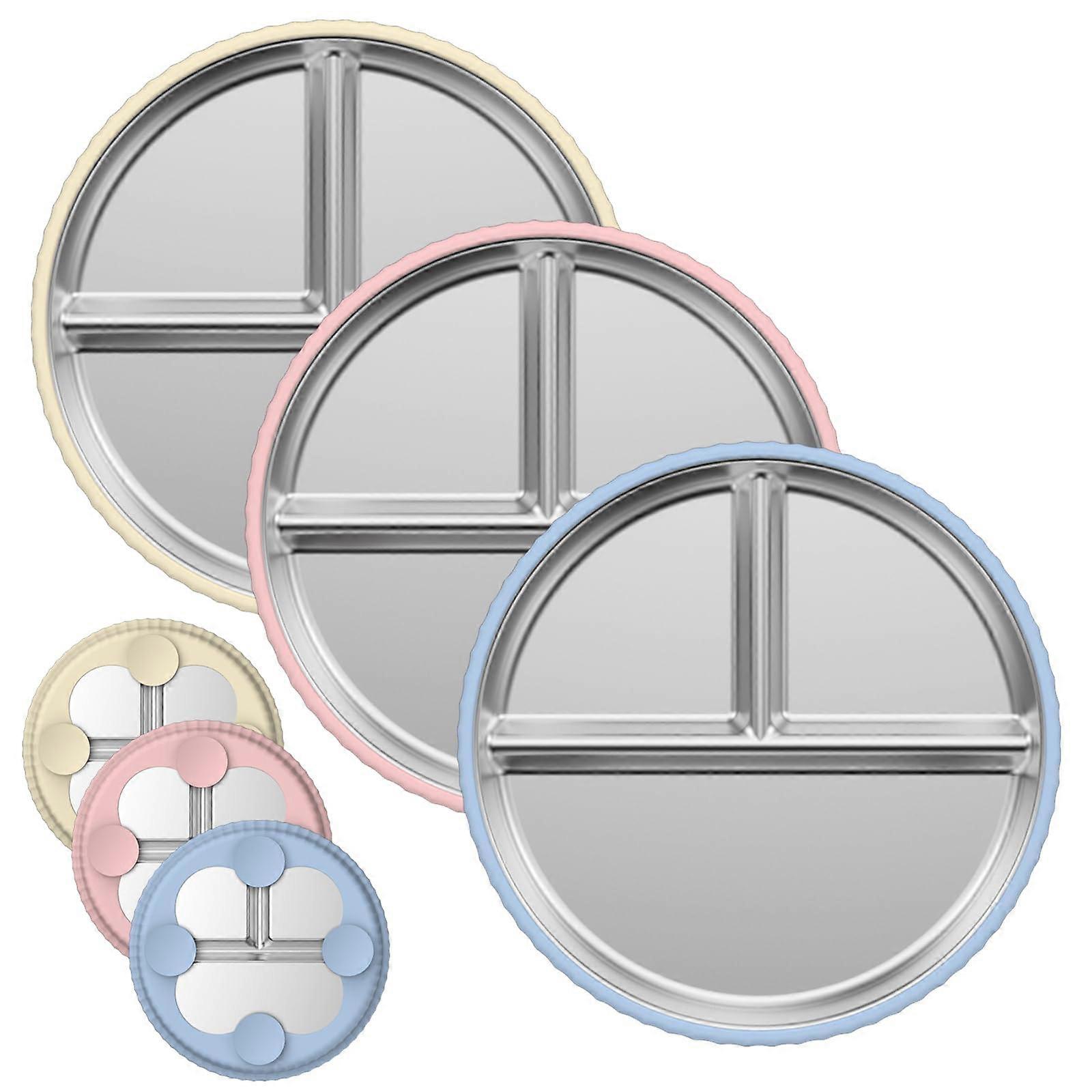 3 Pack Stainless Steel Kids Plates, 9 Inch Divided Portion Control Plates with 3 Compartments, Dishwasher Safe