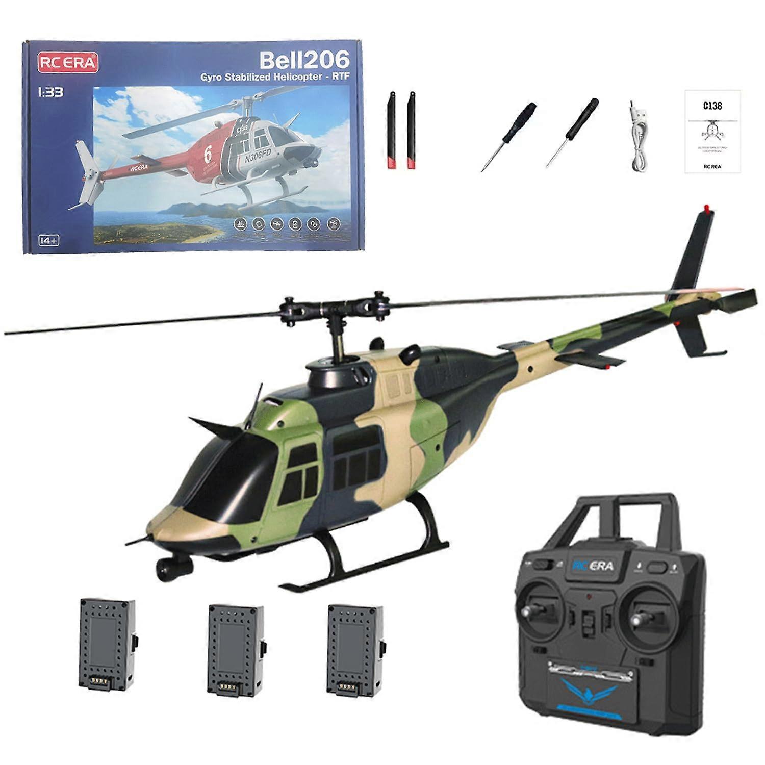 C138 6CH Flybarless RC Helicopter for Adults, 1/33 Scale Single Rotor with Optical Flow and 3 Batteries