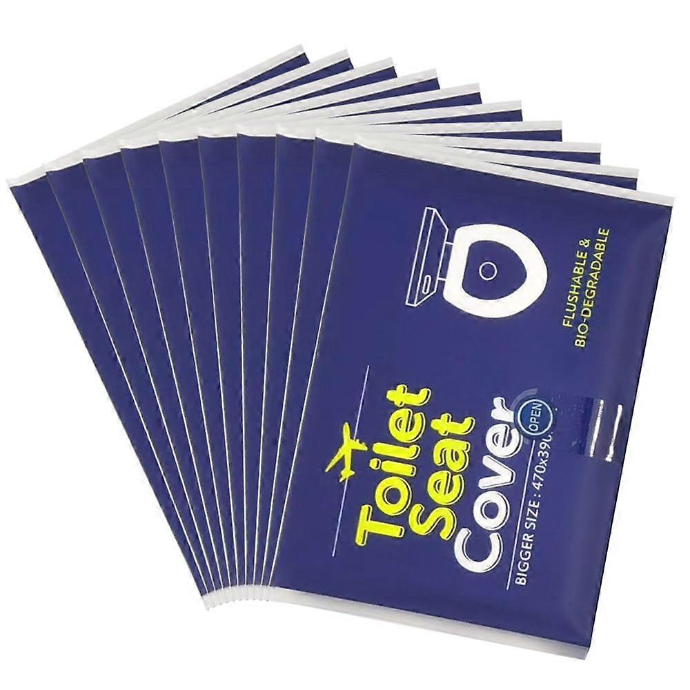Flushable Toilet Seat Covers, 100 Pack White covers packed in dark blue portable packets Size: 19.7 by 16.5 inches Key benefits Ready when you need them: 100 singleuse seat covers in compact dark blue packaging, ideal for carrying in a pocket, purse, or glove compartment. Flushable and convenient: After use, simply flush. The cover is designed to be pulled into the toilet during flushing for easy disposal. Simple, nofuss operation: Remove one folded cover, unfold, separate the tear joints, lay it on the seat and use. Dispose by flushing when finished. Portable and spacesaving: Each cover is folded to fit the compact pack for onthego access without bulk. Product details Count: 100 covers per pack. Color: Covers are white; packaging is dark blue. Size: Each cover measures 19.7 by 16.5 inches, suitable for most standard toilet seats. Design: Singleuse, lightweight covers that unfold to create a seat layer; separated by tear joints for easy handling. Practical use scenarios Commute and travel: Keep a pack in your bag or car for airport layovers, train stations, or rest stops. Work and events: Useful for office restrooms, conferences, sporting events and concerts where public facilities are shared. Outdoor activities: Convenient for camping or day trips when public restrooms are encountered. How to use 1. Open the dark blue pack and pull out one folded cover. 2. Unfold the cover and separate along the tear joints. 3. Lay the cover across the toilet seat. 4. After use, flush the toilet to dispose of the cover. Notes Designed for single use and flushable disposal. Pack is designed for portability and easy storage.