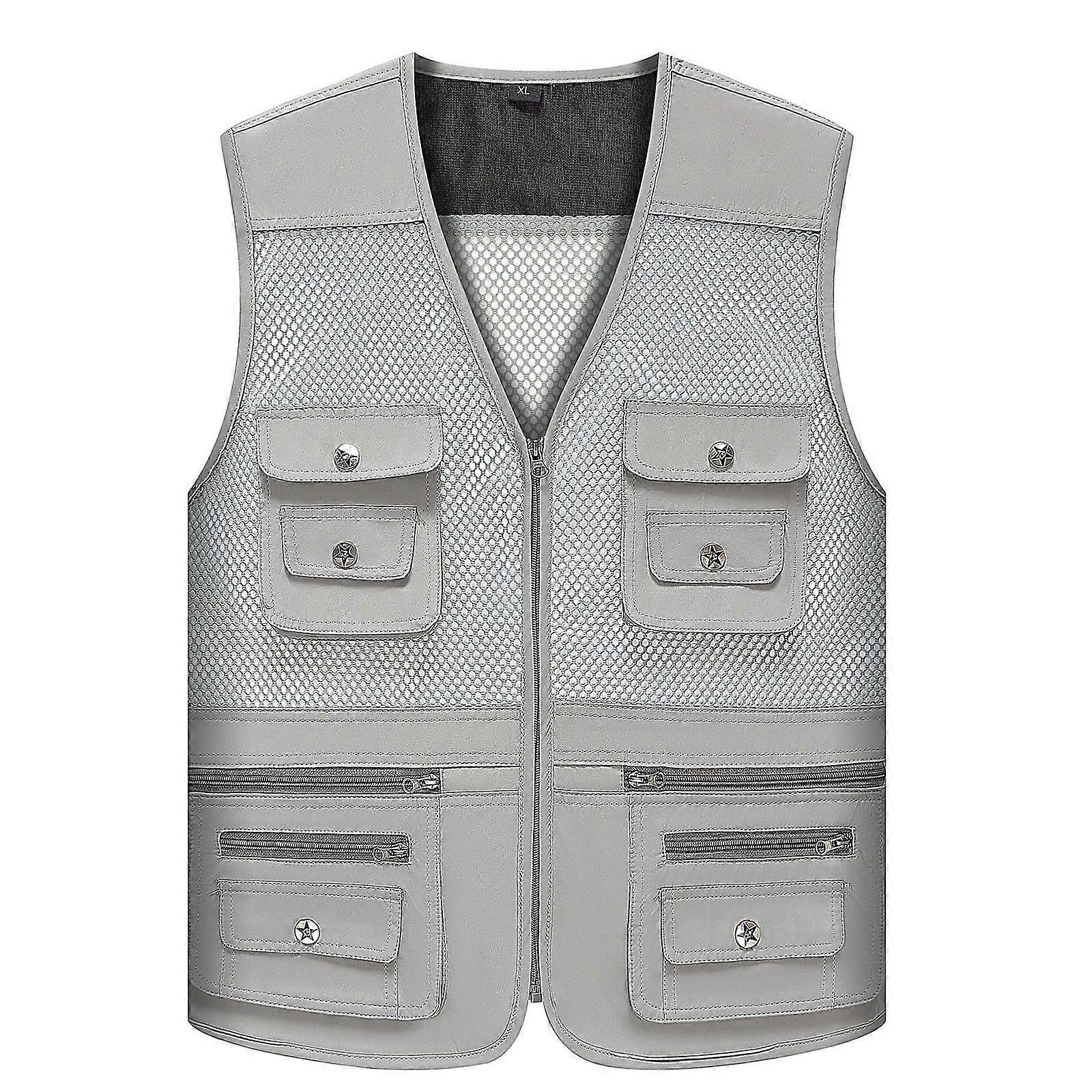 Men's Fishing Vest Quick Dry Breathable Outdoor Safari Jacket with Multiple Pockets 3XL Light Grey