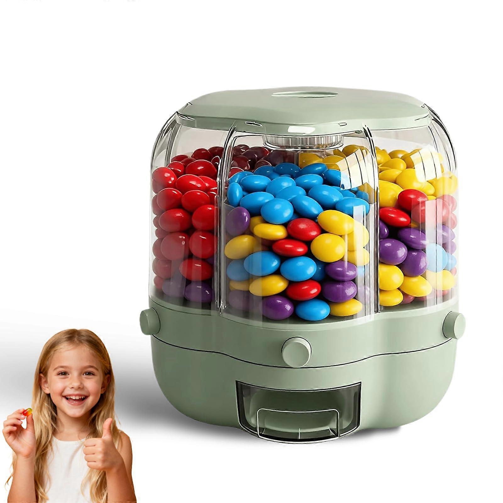 360 Degree Rotating Candy Dispenser with Airtight Six Compartments, Snack Organizer Light Green Small