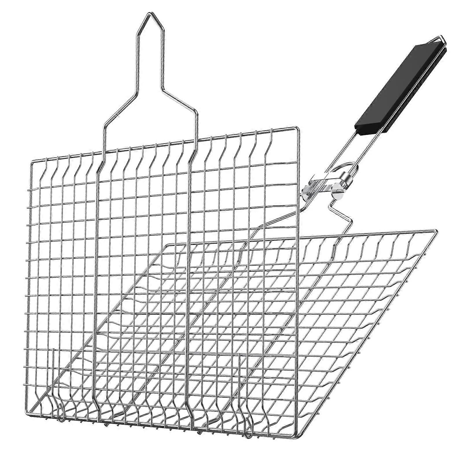 Stainless Steel Folding BBQ Grill Basket with Secure Latch Lid and Foldable Handle for Outdoor Cooking