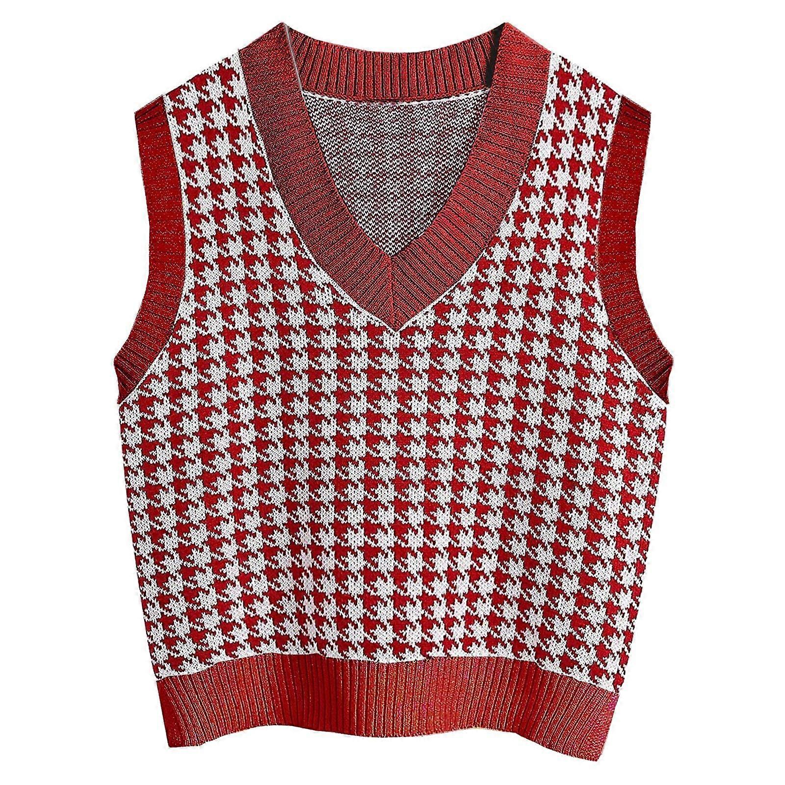 Women's Sweater Vest Warm V Neck Knitted Sleeveless Jumper Soft Breathable Loose Fit Brick Red XXL