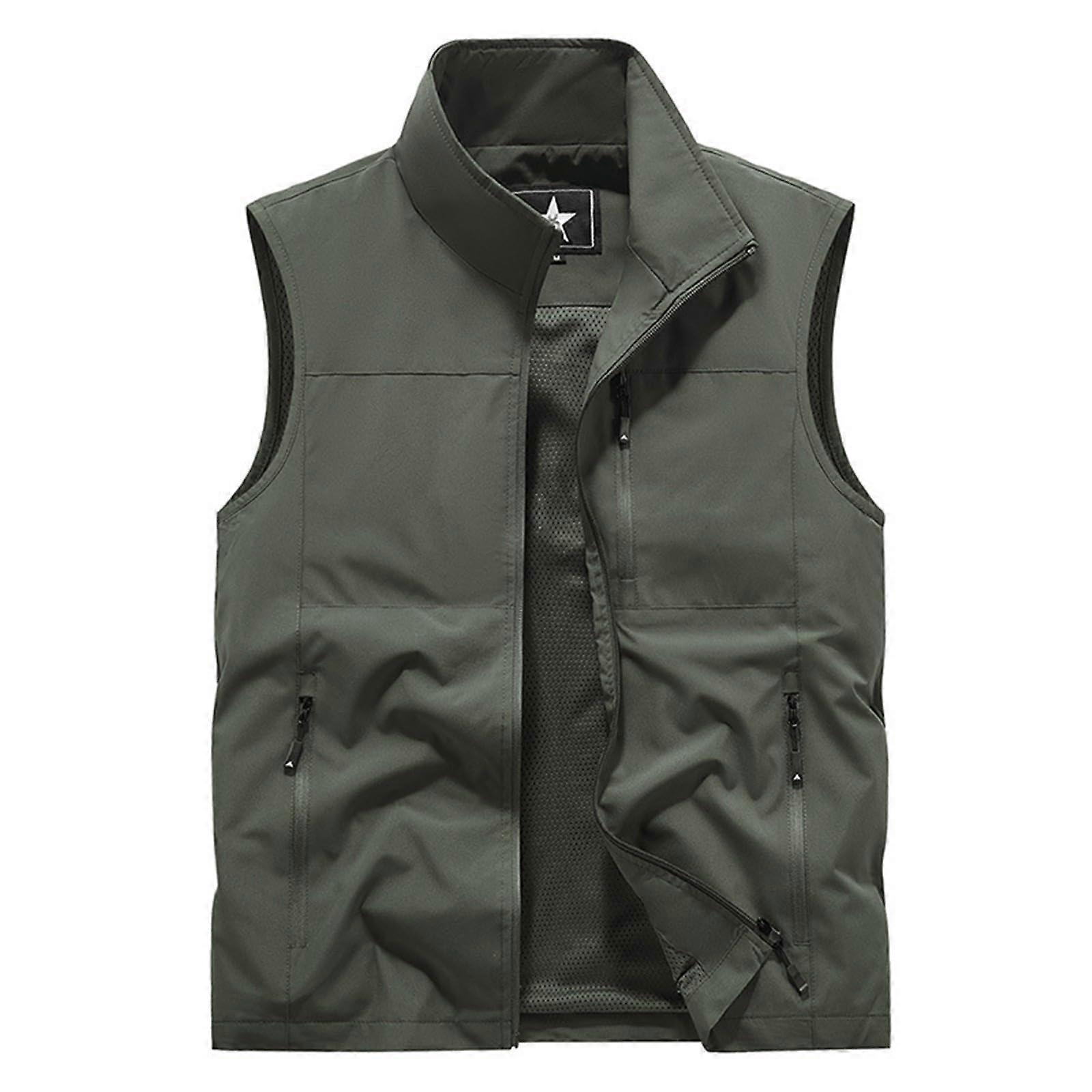 Men's Outdoor Fishing Vest with Multiple Storage Pockets Lightweight Breathable 3XL Army Green