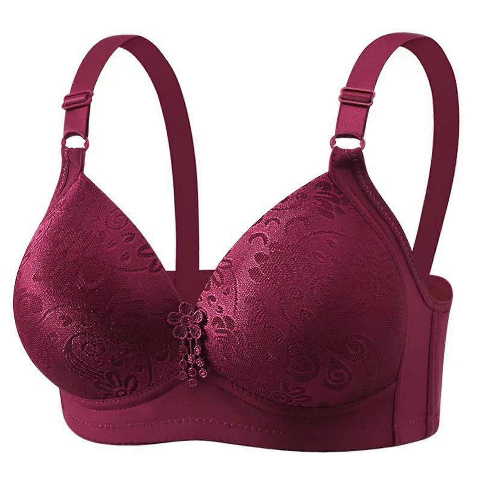 Plus Size Wireless Sports Bra for Women Front Closure Lift Support Breathable Soft Fabric Wine 38