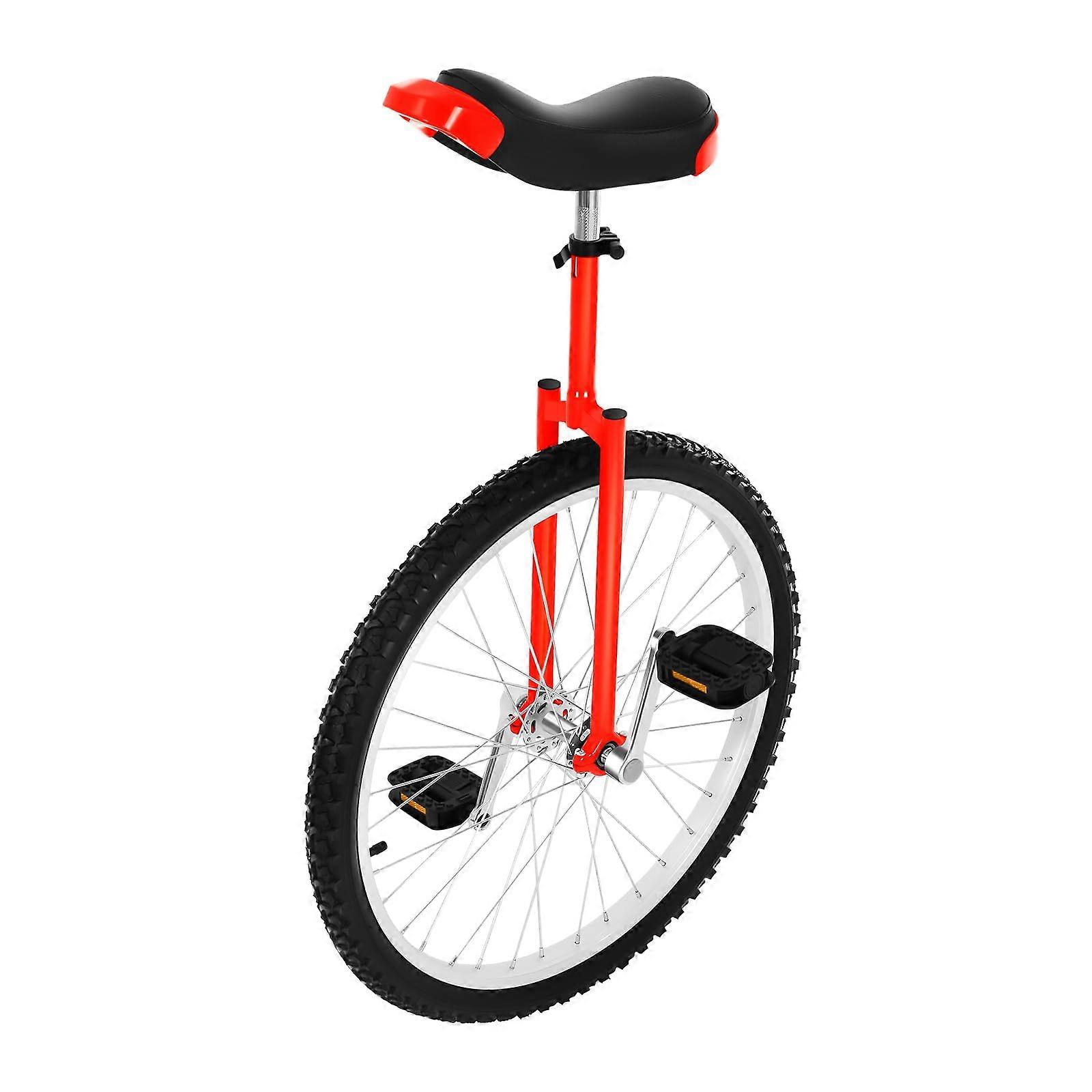 24 Inch Red Unicycle for Adults and Kids with Adjustable Seat and Durable Steel Rim