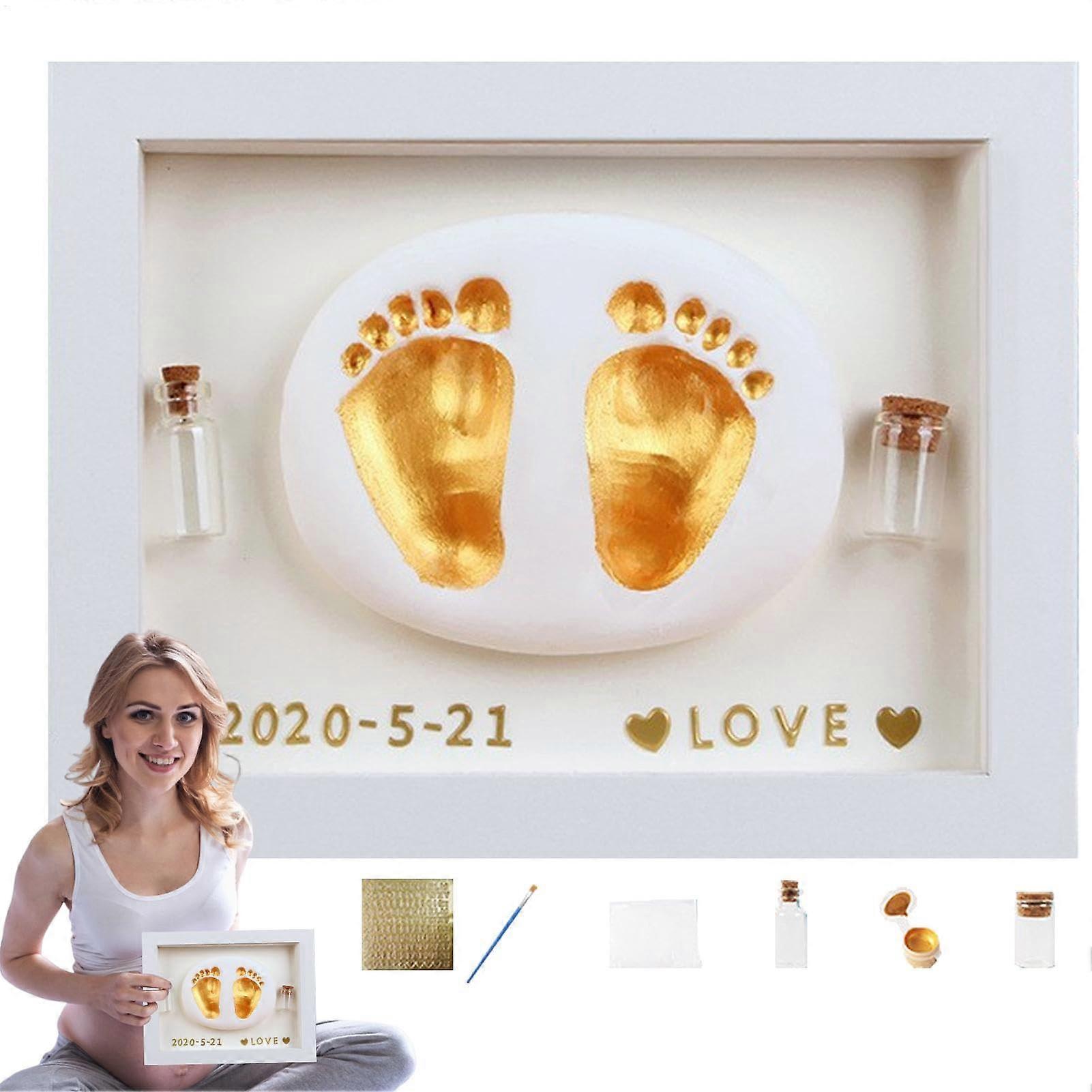 Baby Handprint Footprint Kit with Wooden Photo Frame and Safe Paint, Newborn Keepsake Gift White