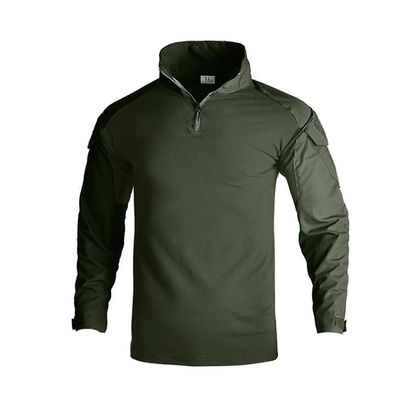 Men's Long Sleeve Tactical Shirt with 1/4 Zip, Military Camouflage Combat for Airsoft Hunting Training