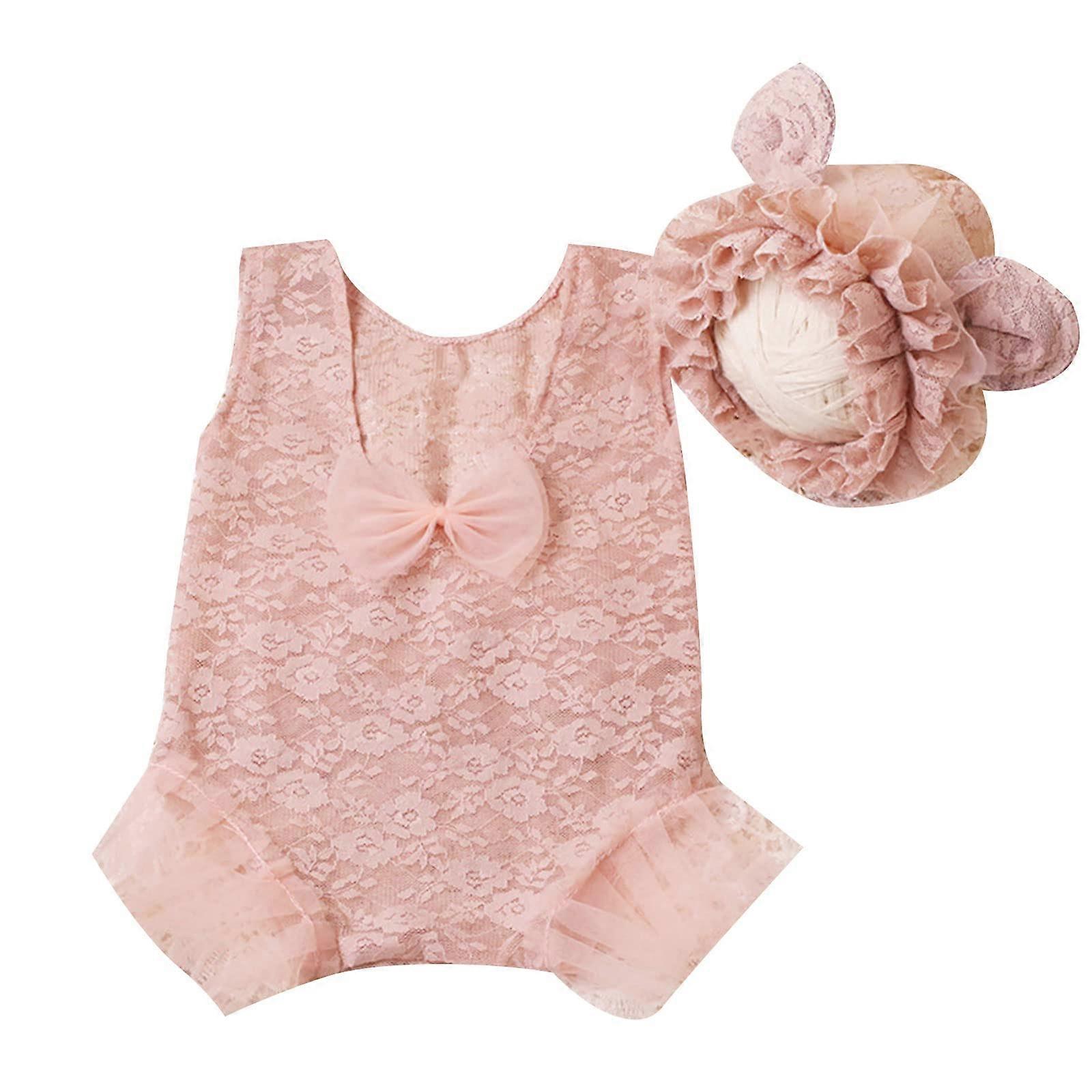 Newborn Photo Props Baby Lace Romper with Bonnet, Breathable SkinFriendly Outfit for Photoshoot