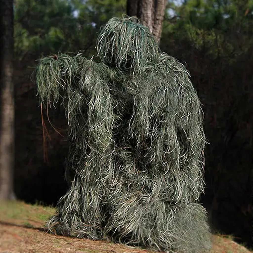 Ghillie Suit Camouflage Hunting Poncho with Breathable Mesh for Woodland and Wildlife Photography Green