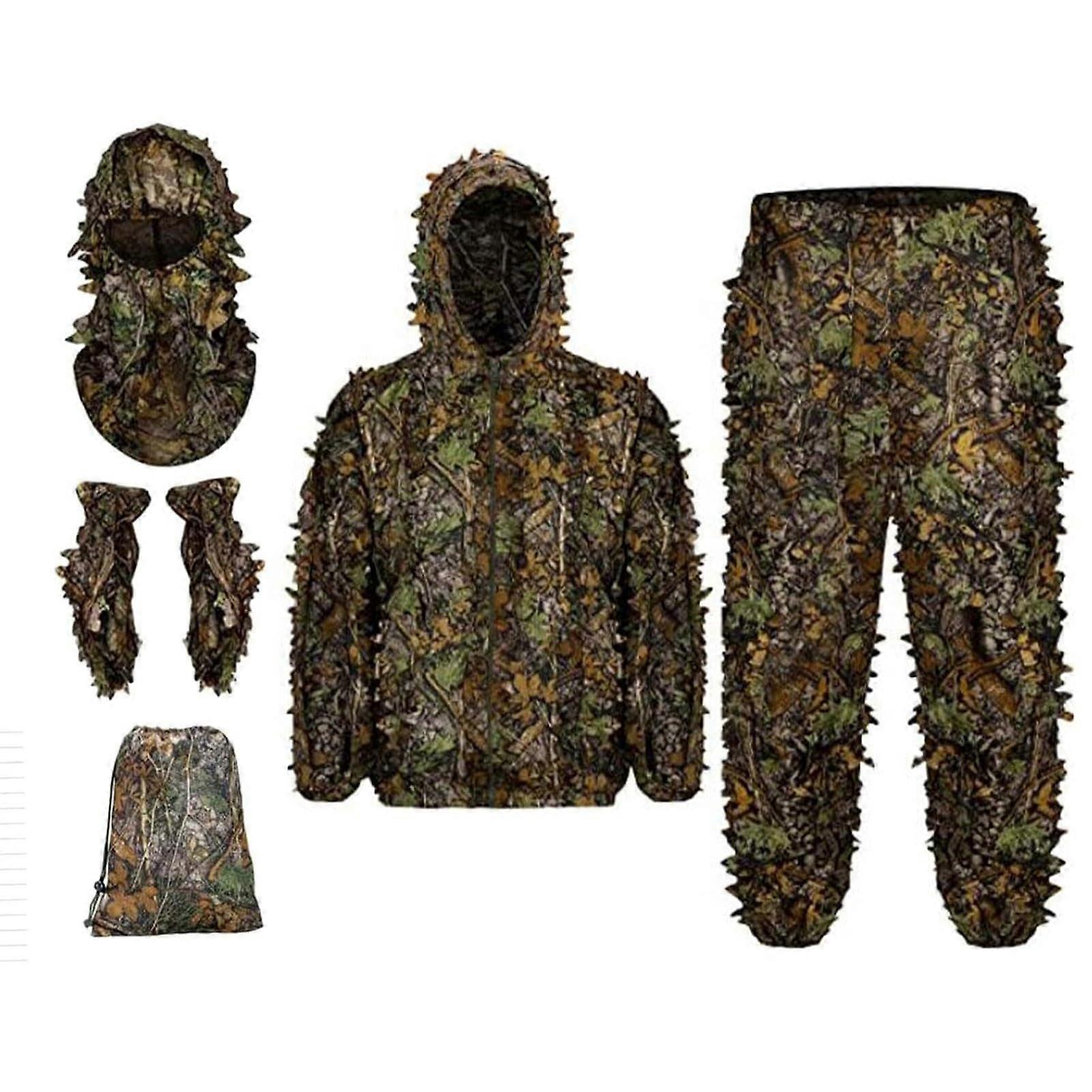 Ghillie Suit 5Piece Lightweight 3D Leaf Camouflage for Hunting, Airsoft, Wildlife Photography, Small
