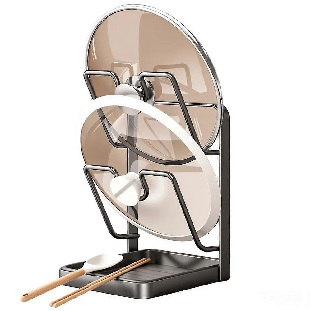 Pot Lid Organizer Double Layer Rack with Removable Drip Tray, SpaceSaving Carbon Steel Stand for Kitchen Countertop