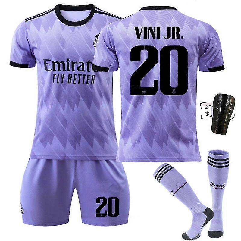 Real Madrid Away Soccer Jersey No.20, Kids and Youth Sizes, Includes Soccer Socks and Shin Guards