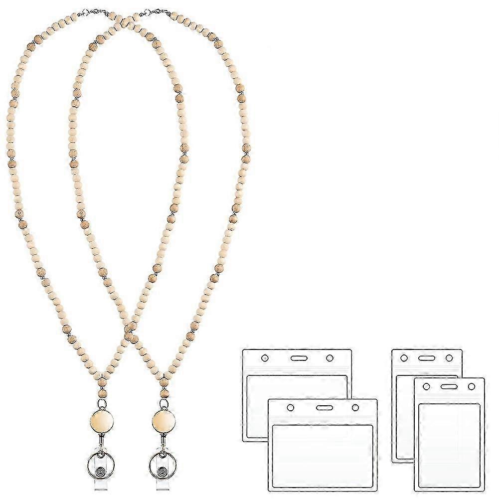 Elegant wooden beaded lanyards 2 pack with retractable reel for id badges teachers and women.