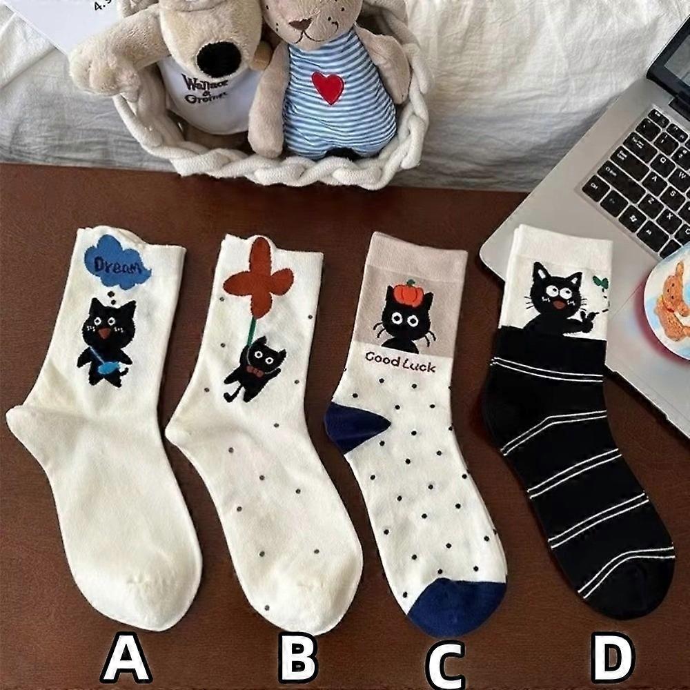 1 pair Fashion Cute Cartoon Cat Women's Socks Casual Comfortable Middle Tube Socks Cotton Soft Loose Socks Gift