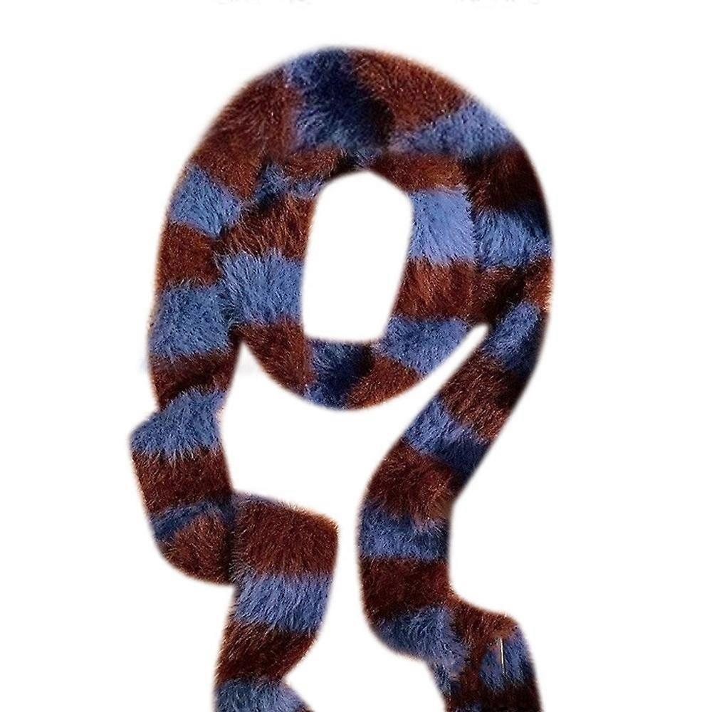 Y2k Aesthetic Colorful Striped Scarf Thin Long Knitted Scarf Warm Skinny Belt Fluffy Neckerchief Women