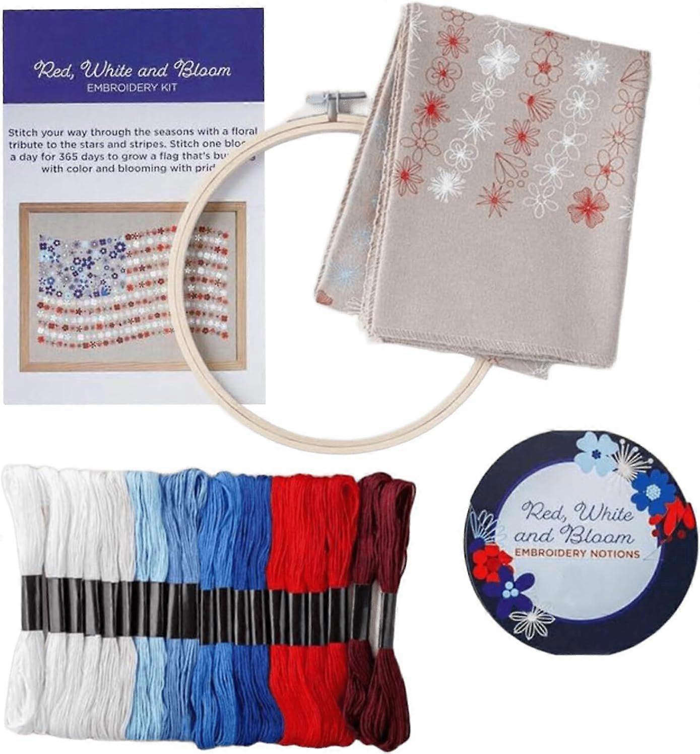Red, White & Bloom Embroidery Kit, US 250th Anniversary Cross Stitch Kit, Flowers Embroidery Kits, Full Range of Embroidery Starter Kits for Beginners