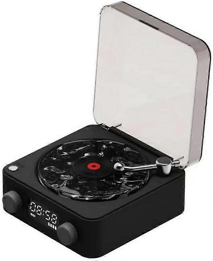 Wave Vinyl Bluetooth Speaker with Adjustable Ambient Lights, Vintage Record Model Players with Time, Music Player with 4 Modes, Small Record