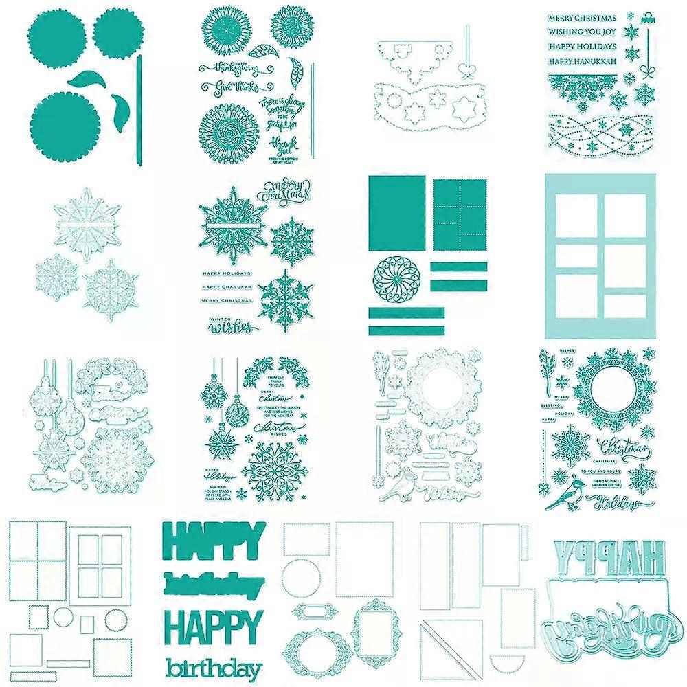 Cutting Dies Snowflake Bell Wreath Happy Birthday Wishes Clear Stamps Frame Plastic Stencil for DIY Christmas Paper Card Crafts