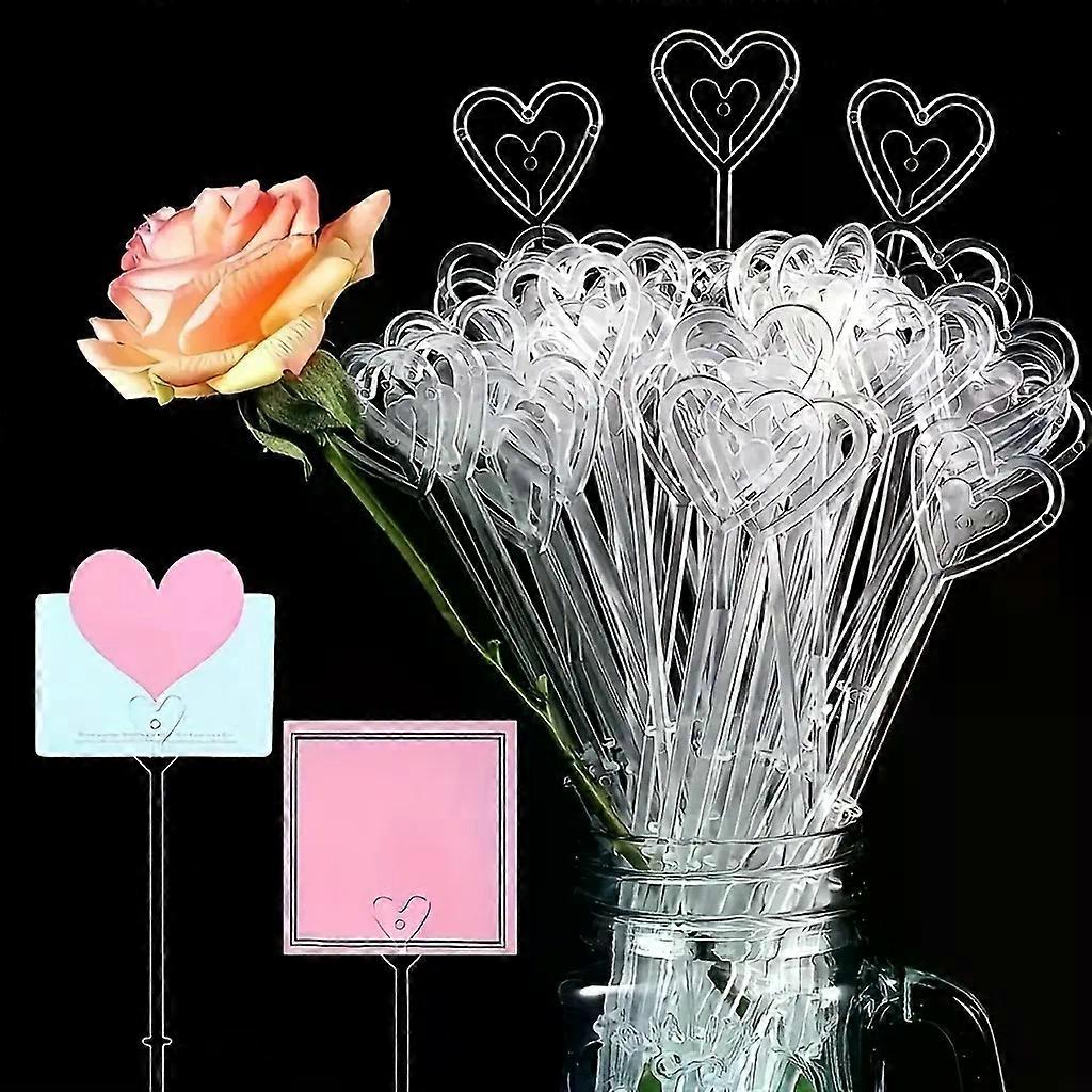 Heart-Shaped Plastic Flower Card Holders - Transparent Floral Arrangement Sticks for Wedding Party Birthday Festive Decor