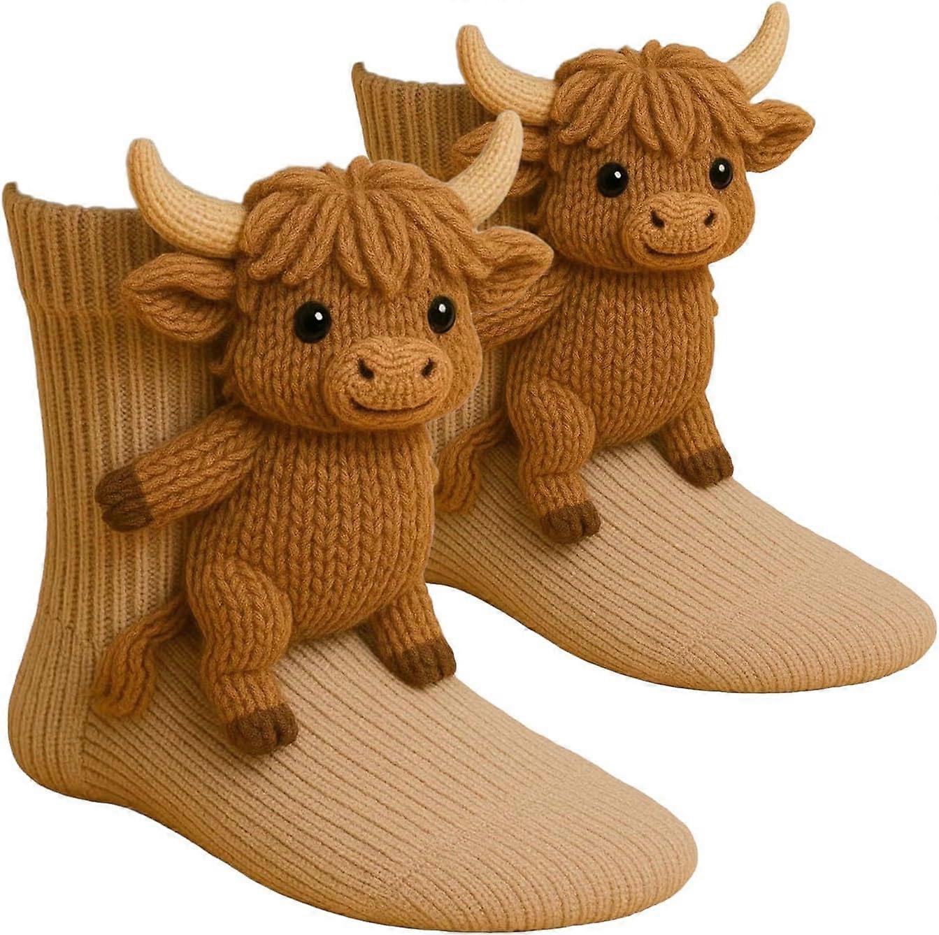 Unisex 3D Knit Animal Socks Winter Warm Cozy Cute Funny Classic Hand Crochet Knit Sock for Holiday, Christmas Gifts